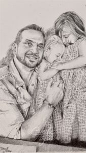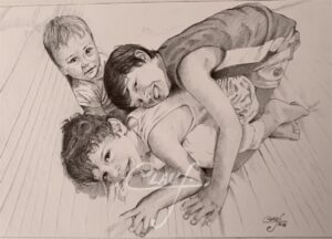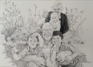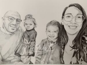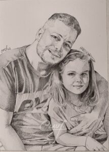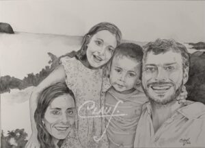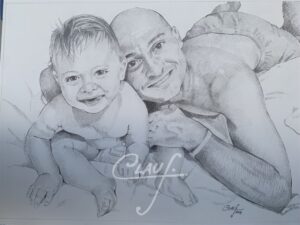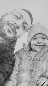 I ritratti in bianco e nero su commissione sono tra le realizzazioni più impegnative e soddisfacenti che mi vengono richieste. Utilizzo tecniche come la grafite e la matita, per catturare con maggiori dettagli l’essenza dei soggetti rappresentati. A differenza del colore, i ritratti in bianco e nero hanno una struttura e una difficoltà diversa, l’assenza di cromia spinge l’artista a trovare e riportare anche il minimo dettaglio e saperlo esaltare nel migliore dei modi. Le sfumature e il tratteggio sono più precise e delineate in modo da riprodurre l’originale, dandogli lo stesso spessore e la stessa essenza.